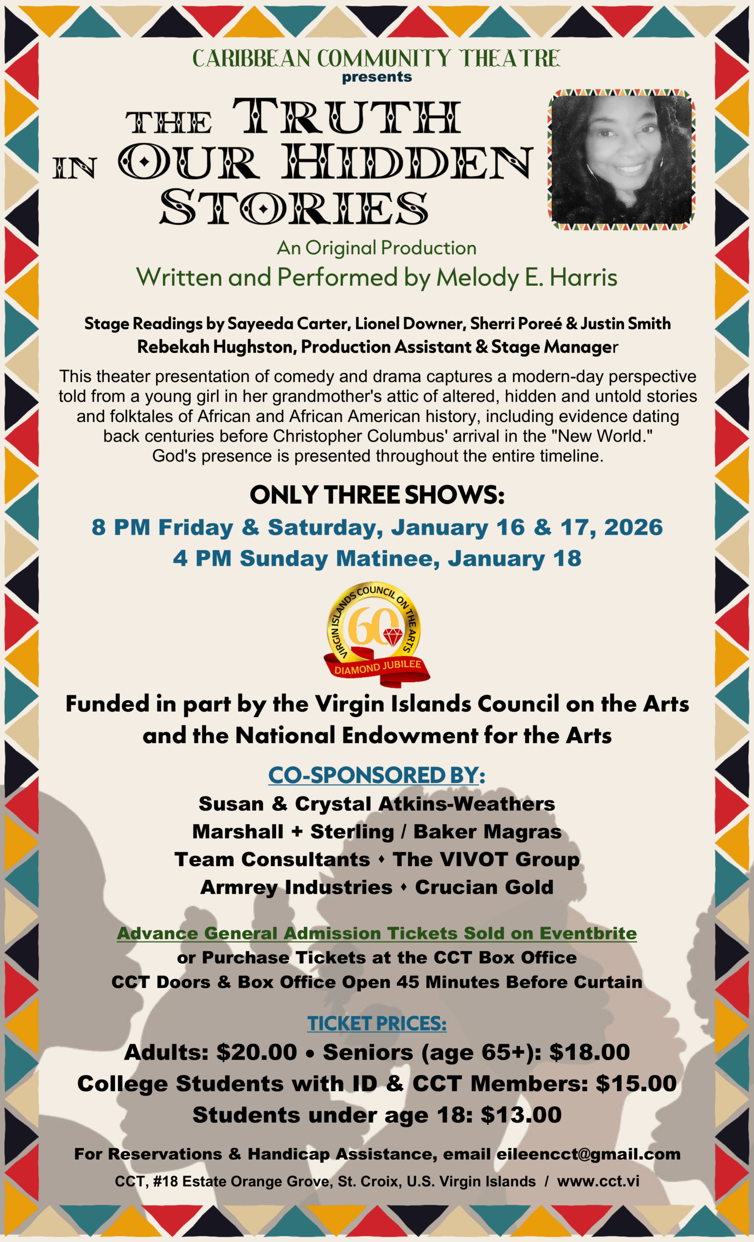 CCT productions are jointly supported by a grant from the Virgin Islands Council on the Arts and the National Endowment for the Arts.